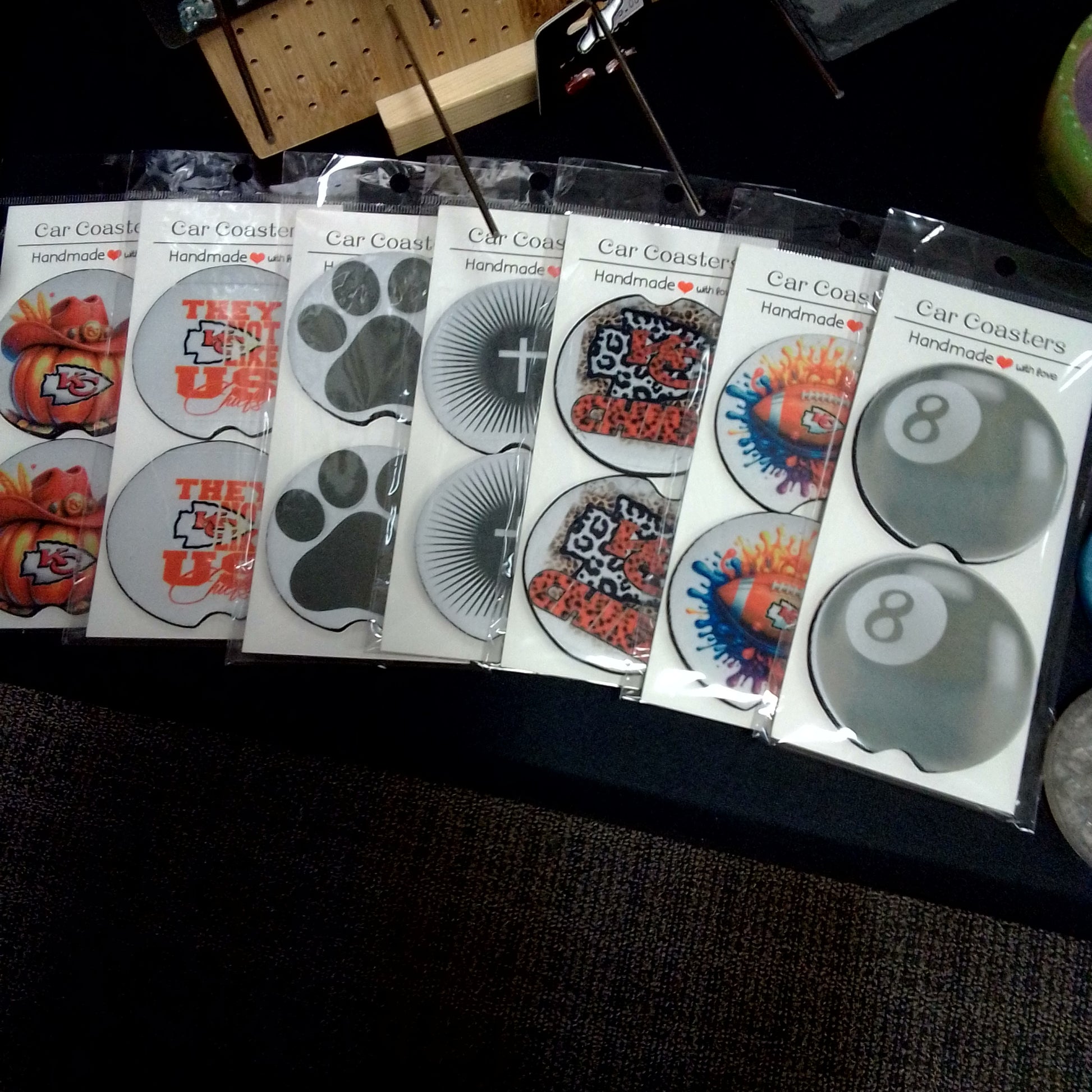 These sublimated car coasters provide a practical and stylish solution for preventing spills and condensation buildup in your car's cup holders. Made with durable materials and a unique printing process, they are designed to last and enhance the look of your car's interior. Experience the benefits of convenience and aesthetics with this pair of car coasters.