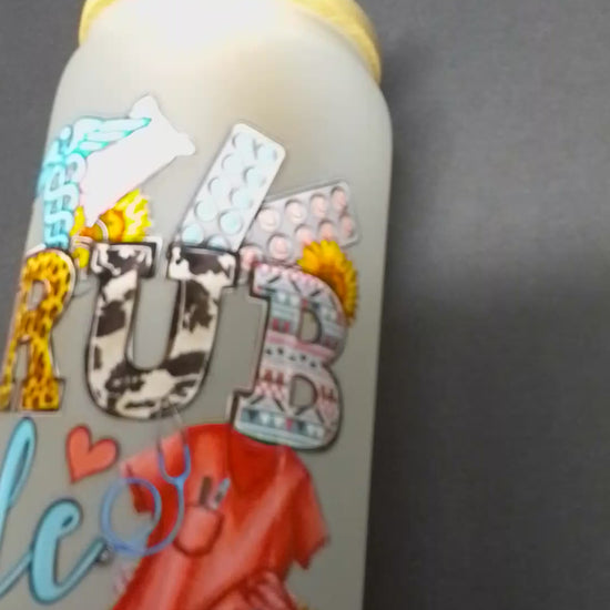 Scrub life glass with bamboo lid rubber seal plastic straw.